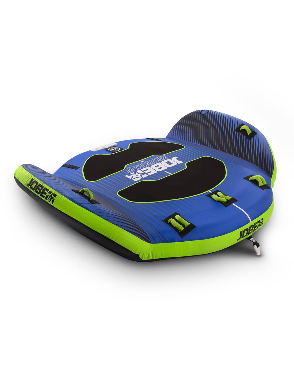 Seatbelts fastened? Climb on board on the Airstream and be prepared for a bumpy ride. This is one of our top sellers and for a good reason. Due to its 4 strategically placed comfy foam-filled handles with luxurious neoprene knuckle protection, the Jobe Airstream allows different riding positions. The Airstream has been manufactured with a 840 denier nylon cover, which makes the Airstream stronger than most competitors. Its well-thought out form gives users a lively, energetic feeling and make them literally fly over the water. A one way valve and quick connector make this tube super user friendly.